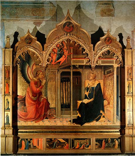 ロレンツォ・モナコの後期の代表作は「マギの礼拝」と聖母伝壁画。人体は引き伸ばされ、衣服は肉体の構造とは無関係に独自のリズムで漂っている。照明効果や遠近法など、ルネサンス美術の成果の一部が見られるが、ロレンツォの描く世界は非現実的で神秘的な世界に止まっている。