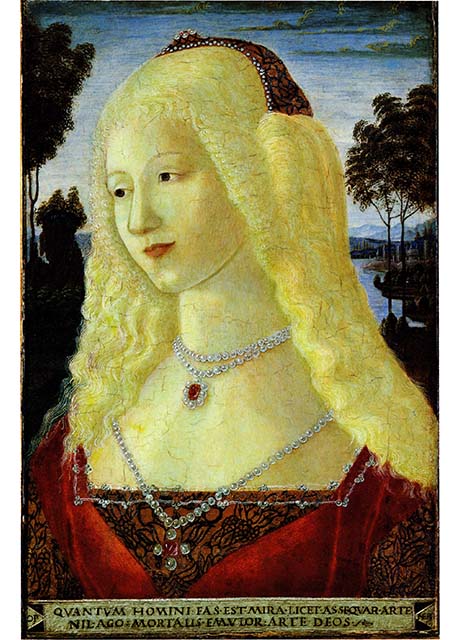 画家としてはフランチェスコよりも独創性がある。このシエナ美人の典型のような肖像画には下に銘文があり、その両脇にA.PとNERというイニシャルが記されている。NERはネロッチョのことだとされるが、A.Pについては、教皇ピウス2世の一族の娘で、アクィラの領主と結婚したアレッサンドラ・ピッコローミニとする説がある。