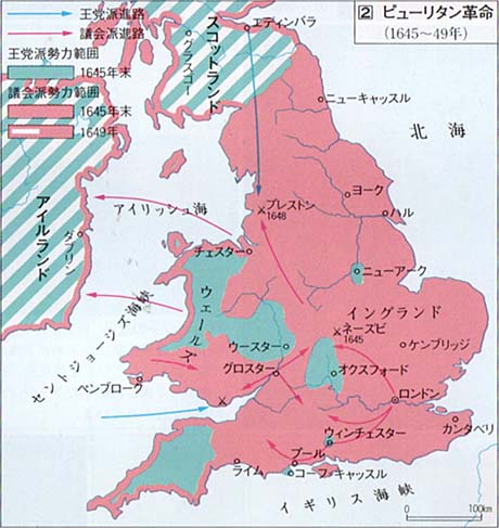 1644年7月のマーストン・ムアの戦いは、スコットランドからの援軍やクロムウェルの「鉄騎兵(国王派が鉄騎兵(隊)と呼んでおそれた)」の活躍があって議会軍が勝利した。この後、クロムウェルは議会軍の改革に取り組み、1645年4月「鉄騎兵」を中核にしたニュー・モデル軍を編成した。同月「辞退条例」で妥協的な長老派の指揮官を軍隊から追放した。議会軍はピューリタンの従軍牧師の影響もあって、ローカリズムを克服し、「神の大義」のために戦う軍隊になっていった。
